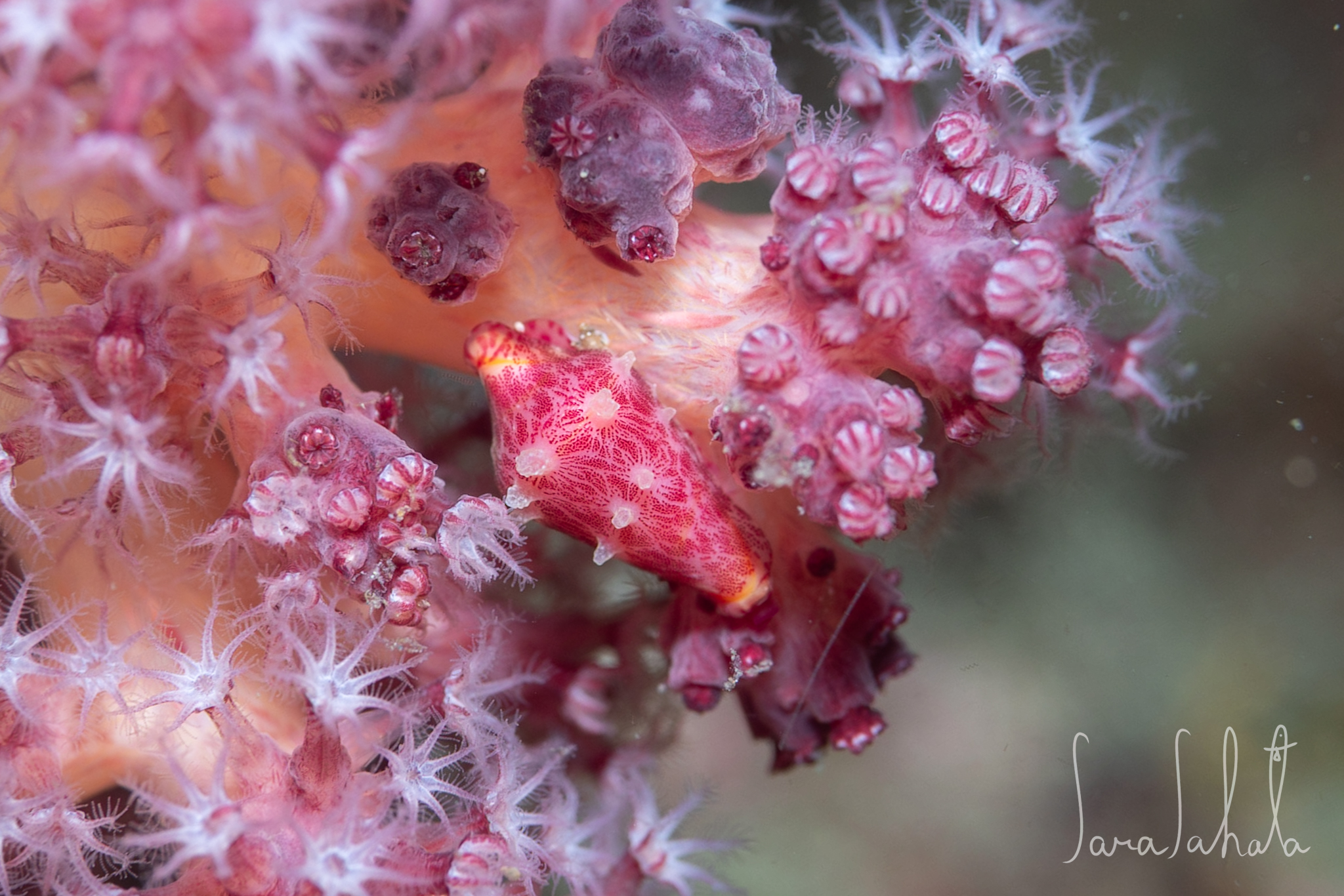 アヤメケボリ 2025.03.152025.06.04 腹足綱 > タマキビガイ目 > ウミウサギガイ科 Crenavolva traillii (A. Adams, 1856) 2024/4/28 大瀬崎 -10m ウミトサカのポリプのような幕で貝を覆っています。ウミトサカがコケに覆われていて逆に目立っちゃってます。 2025/5/2 坂田 -15m ピンクっぽいトサカにピンクぽい子。 2025/5/2 坂田 -15m ポリプが咲いてないと膜のポリプもちゃんとなくしてます。