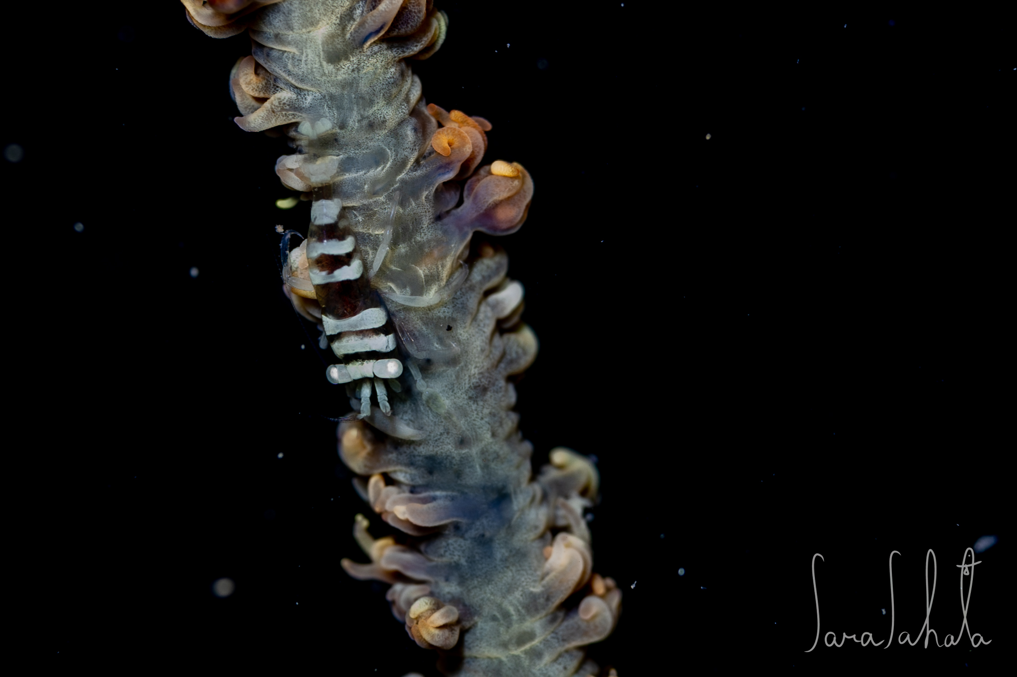 ムチカラマツエビ 2023.10.202025.12.31 節足動物 > 軟甲綱 > 十脚目 > コエビ下目 > テナガエビ科 > ヤギカクレエビ属 Pontonides loloata Bruce, 2005 2023/4/2 土肥 -25m オレンジのムチカラマツにはオレンジの子がついてます。ついてるサンゴで名前が付いててわかりやすいです。 2025/5/3 坂田 -15m オレンジ! 2025/5/3 坂田 -15m 白!後は黄色。。。 2025/9/15 坂田 -20m また白!黄色いムチカラマツチェックするのをいつも忘れる。