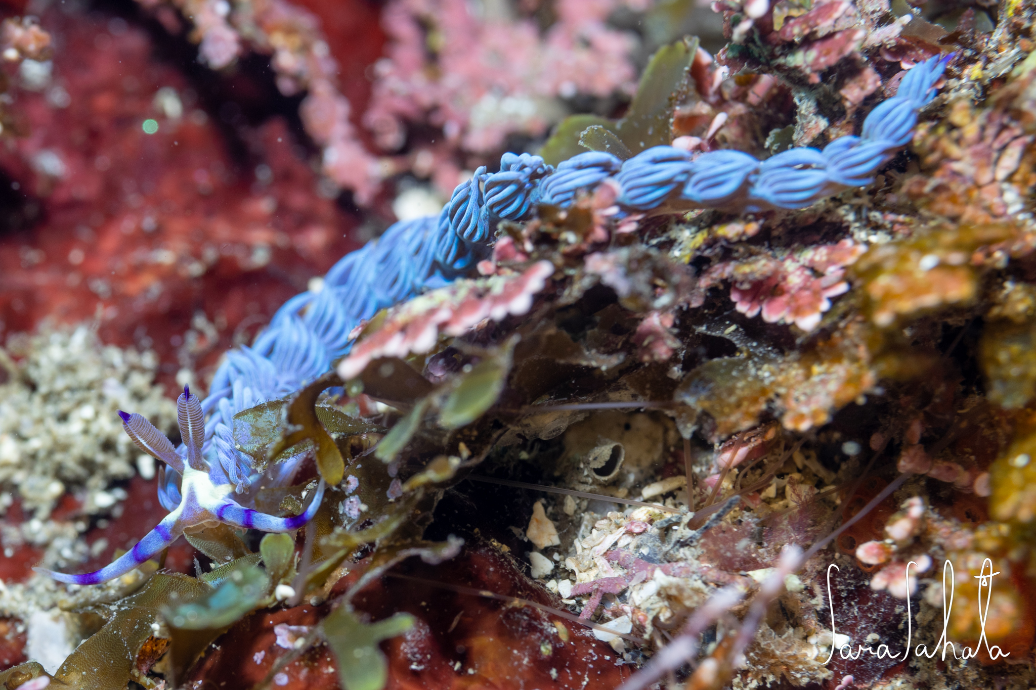 ムカデミノウミウシ 2022.01.302025.05.05 腹足綱 > 裸鰓目 > 枝鰓亜目 > ヨツスジミノウミウシ科 > ムカデミノウミウシ属 Pteraeolidia semperi (Bergh, 1870) 2022/1/23 葉山 -5m 西伊豆ではあまり見ないのに葉山には何百匹といるんですね! 小さい目が有ります。 サイズも10cm以上のばかり目に入ります。 2024/12/29 葉山 -3m やっぱり目に入ります。綺麗なんですが数が多いのであんまり人気無いかも。